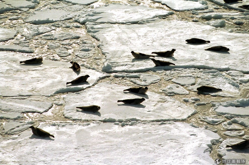 加拿大的聖羅倫斯灣區,成年的海豹們正閒適的躺在冰上享受陽光!圖片來源:Darren McCollester/Newsmakers