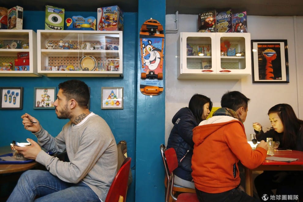 路透社他們提供英國、美國還有全球各地的麥片,一小碗麥片只要2.5英鎊(折台幣119元),還可以選擇不同口味的牛奶和配料加進去。配料種類五花八門,有香蕉、軟糖、棉花糖等各種配料任君挑選。