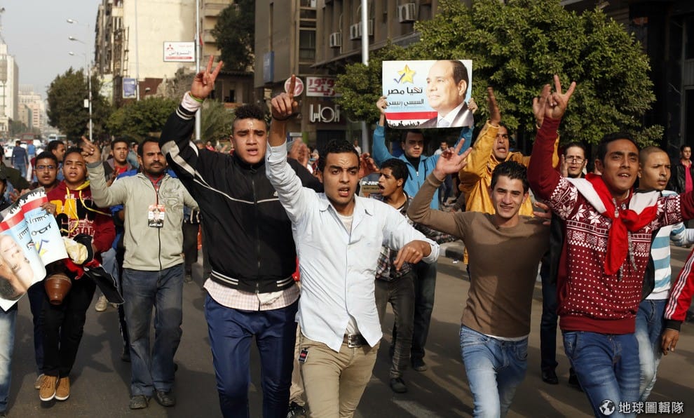 支持現任總統的民眾高舉塞西的照片上街表示聲援。