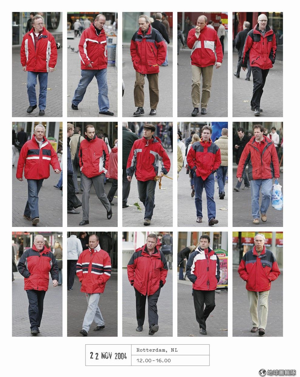 網友圖為2004年,在鹿特丹穿著紅色防風外套的男性。Photo credit: Hans Eijkelboom