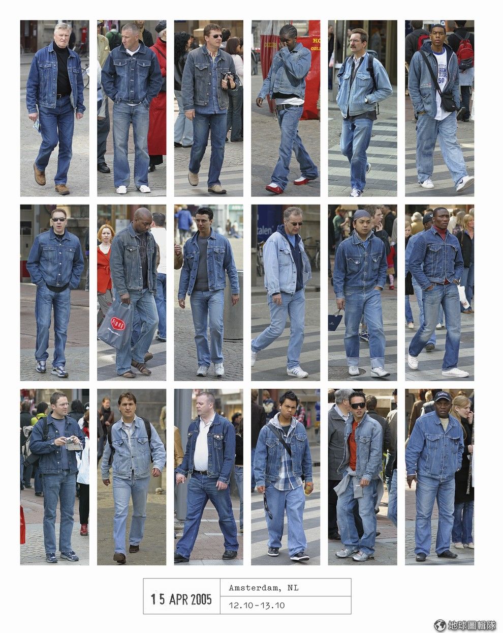 圖為2005年,在阿姆斯特丹被拍下穿著成套牛仔服飾的男性。Photo credit: Hans Eijkelboom