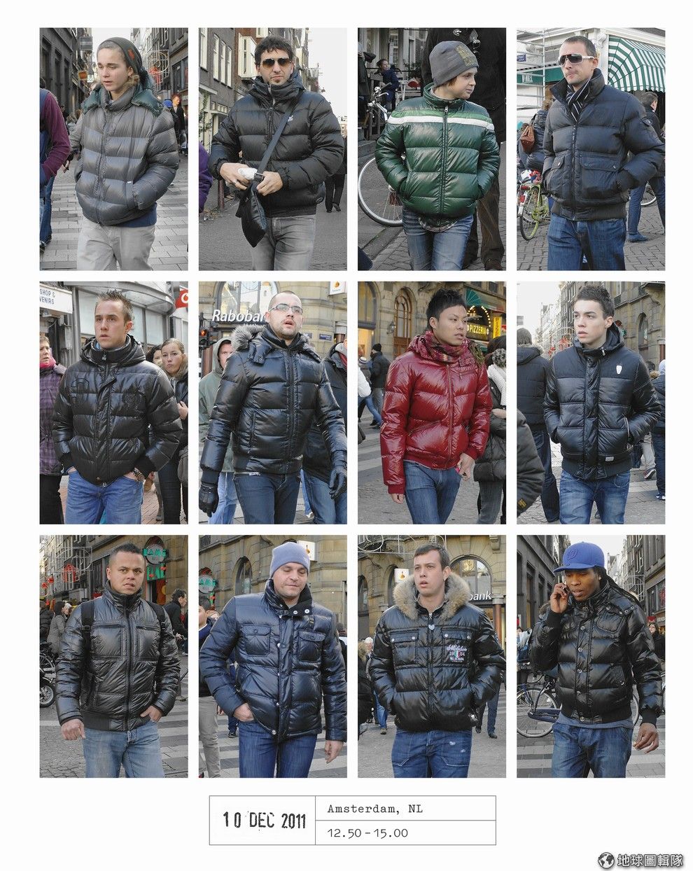 圖為2011年阿姆斯特丹的大街上,不少人同時穿上保暖的羽絨外套。Photo credit: Hans Eijkelboom
