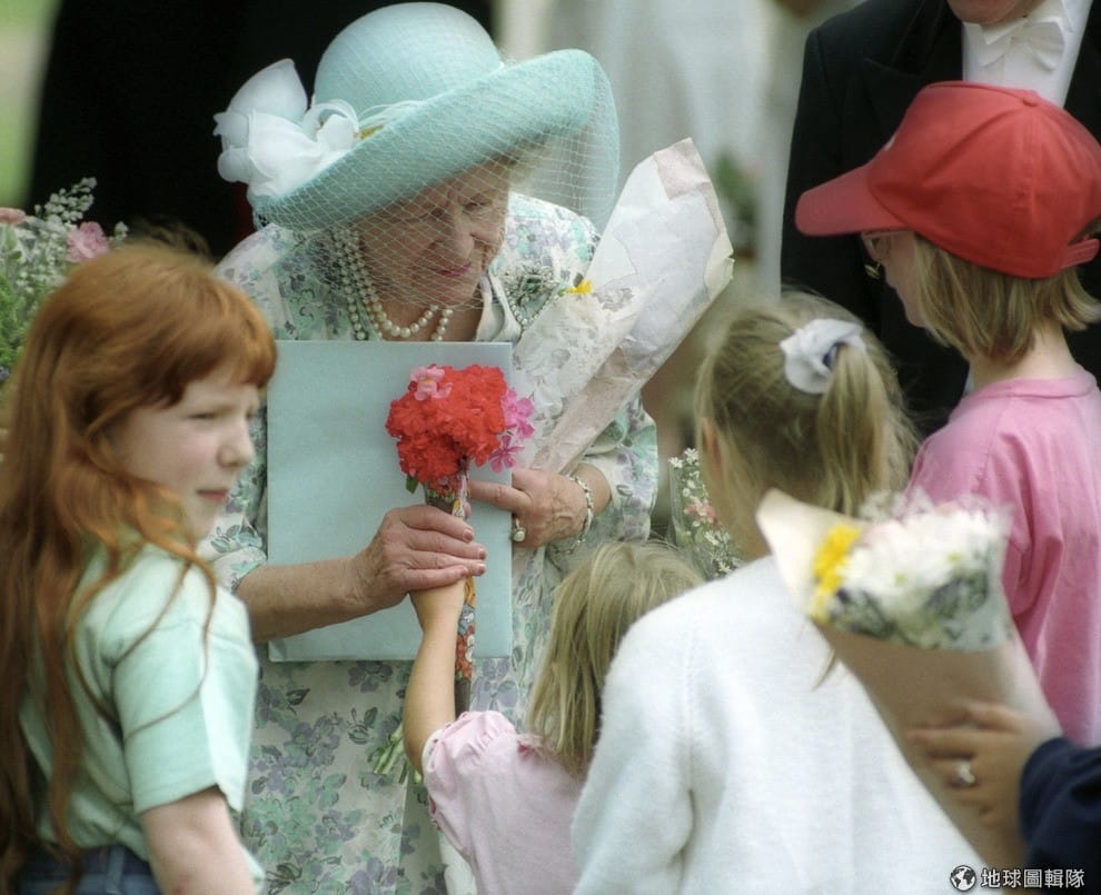 女王高興地收下民眾送給她的花束與禮物。