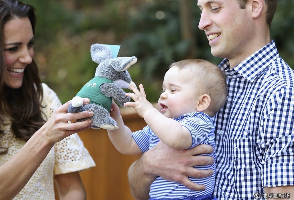 喬治王子在和爸媽出訪澳洲時,開心地把玩動物園送的絨毛玩偶。