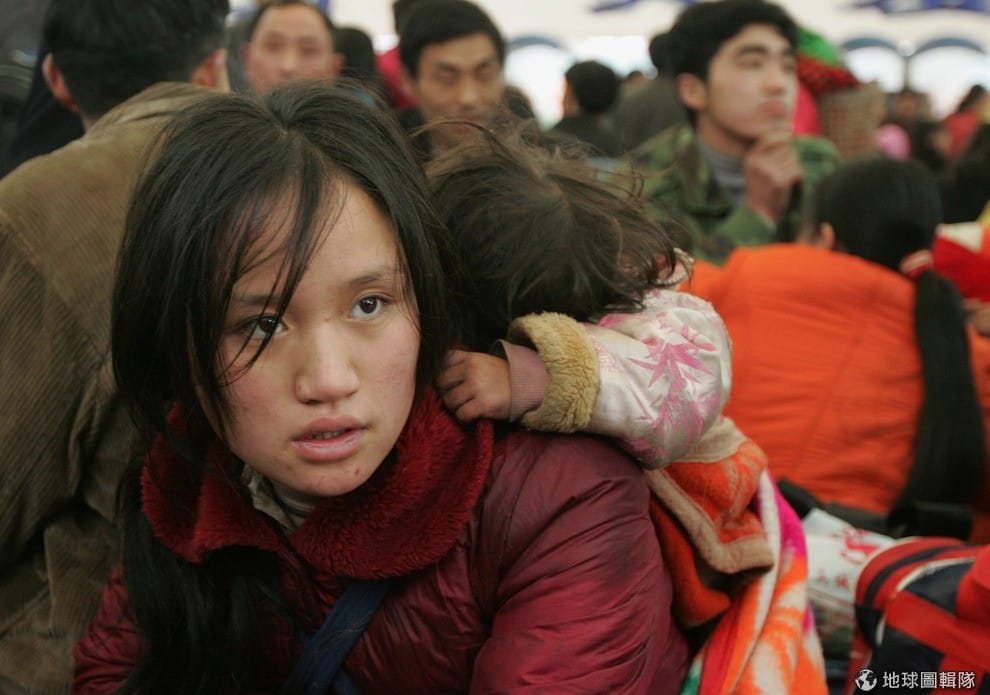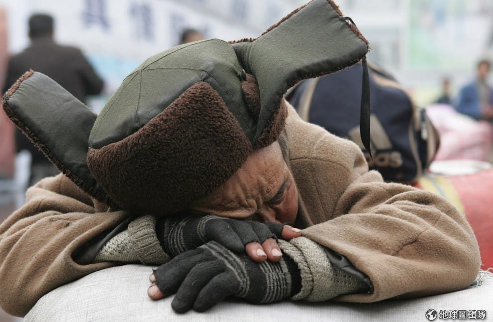 小妹妹跟媽媽一起等著買火車票,等到都累了。圖片來源:China Photos/Getty Images