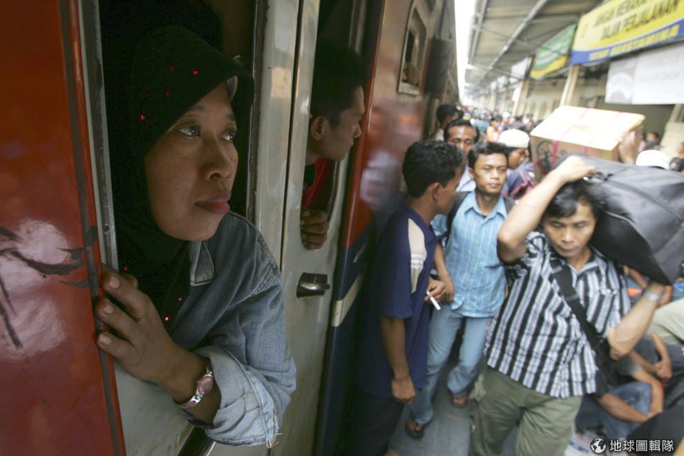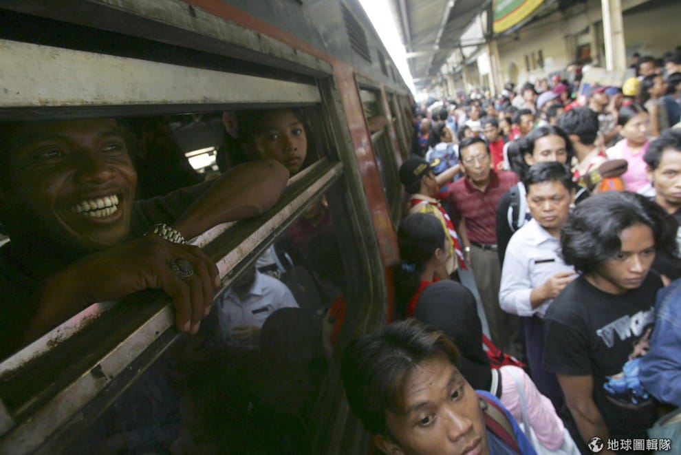 車站內各種心情都有,有人興奮可以回家、也有人滿臉無奈地等著上車。圖片來源:Dimas Ardian/Getty Images