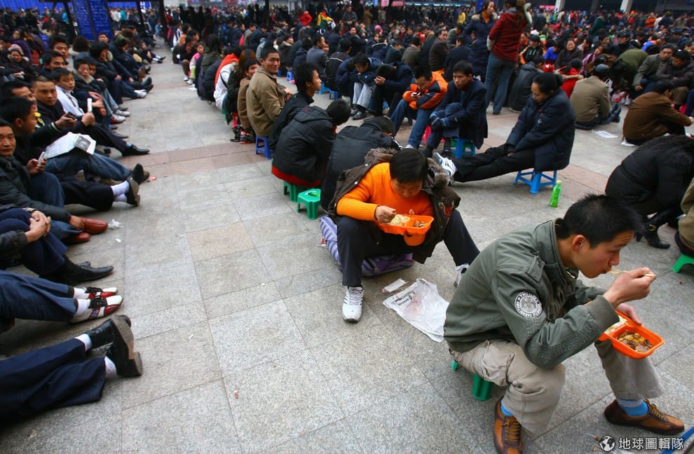 重慶地區的人們,直接在廣場上席地而坐,外地工作的游子們要回家過年,也只能耐心等候了。圖片來源:China Photos/Getty Images