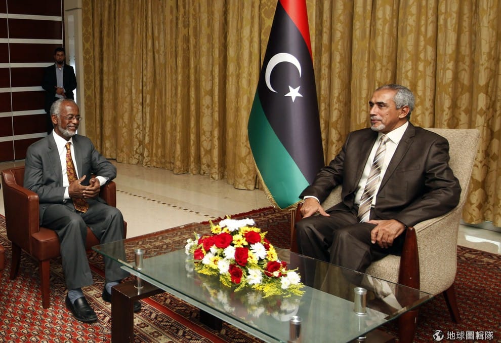 身為這次攻擊事件目標的利比亞總理哈西(右)在2014年11月接見蘇丹外交部長。