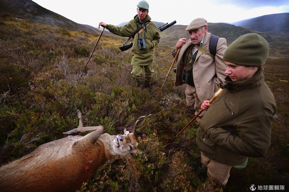 每年7月到10月是蘇格蘭狩獵公紅鹿的季節,過去45年來,首席獵鹿師彼得‧法瑞瑟(Peter Fraser)一直運用傳統的獵鹿技巧(deer stalking)來狩獵公鹿,這種技巧與北美的狩獵(hunting)不同,北美洲是以眼力特強的獵犬驅趕動物給獵人,而在英國當地和愛爾蘭地區,則保留「跟蹤」(stalking)的精神在各項狩獵運動中。