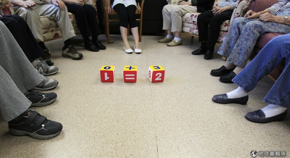 美國洛杉磯當地一家照護阿茲海默症患者的中心,患者們正在接受打乒乓球的療程,藉由運動增加他們的心跳和大腦血流量,改善他們的症狀。