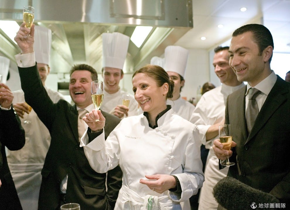 一得知餐廳獲得米其林三星的殊榮,主廚開心地與團隊舉杯慶祝。