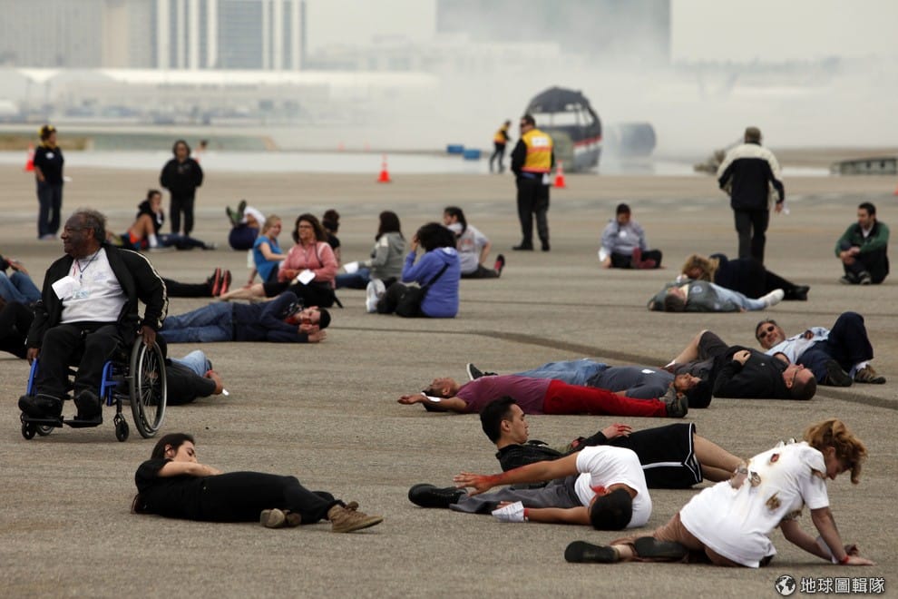 2013年時,洛杉磯國際機場請來演員練習飛安事故演習。