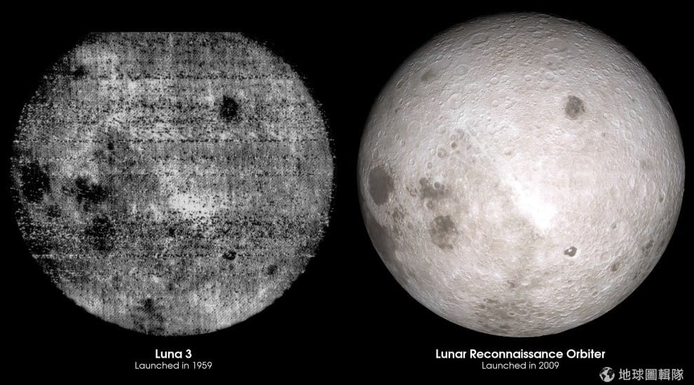 直到 56年前,也就是 1959年,蘇聯的太空梭月亮 3號總算拍到了月球背對地球的那一面。但是,今天多虧了美國太空總署(NASA)從 2009年就繞著月球運行的月球探勘軌道衛星(Lunar Reconnaissance Orbiter, LRO)的幫忙,我們總算能比以往更清楚地觀察到月球的另一面。