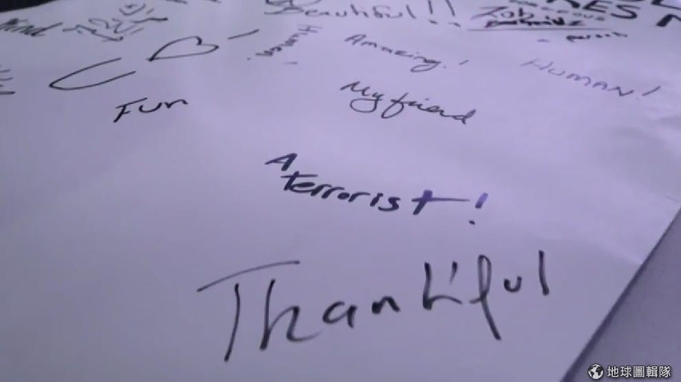 有趣的是,潔與朋友們事先在白板上寫下「恐怖份子」幾個字,因為這是人們對穆斯林的刻板印象其中之一,結果路人在留言時看到這些字都表示很訝異,並對潔表示難過。