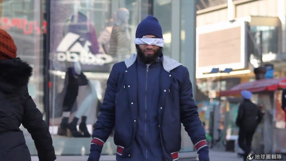 潔請她的朋友矇眼站在街頭,實驗有多少人敢上前和蓄鬍的穆斯林擁抱。