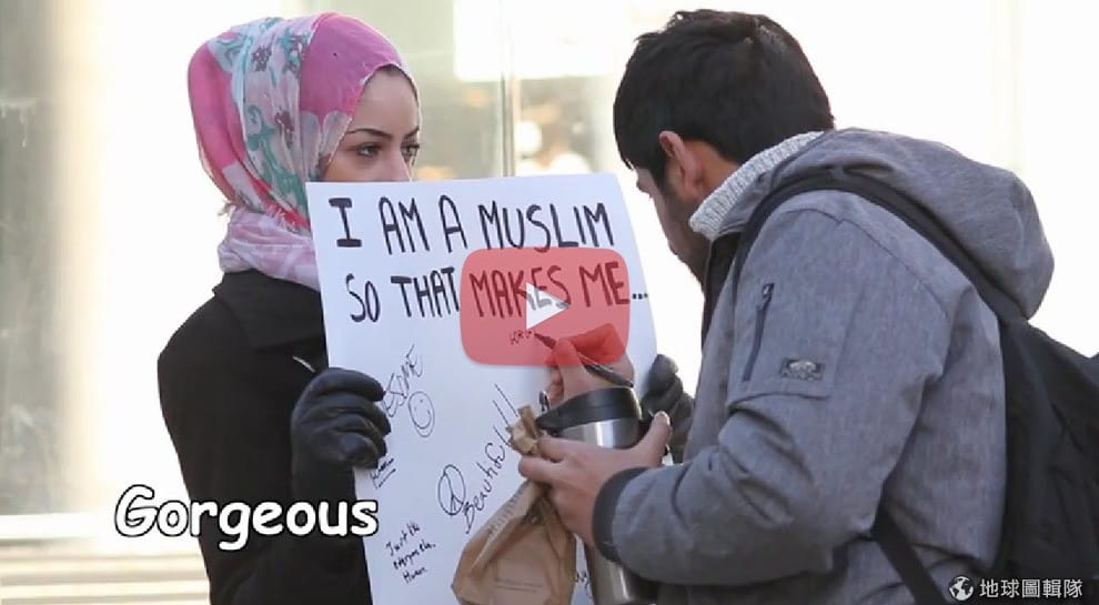 在 youtube上發起穆斯林正名活動的網友潔(AsoOmii Jay),她為了對近期不斷冒出的「伊斯蘭恐懼症」做出回應,決定在街頭進行一連串的實驗, 1月底時,她和同樣是穆斯林的朋友一同在加拿大多倫多市的街上做做街頭實驗。