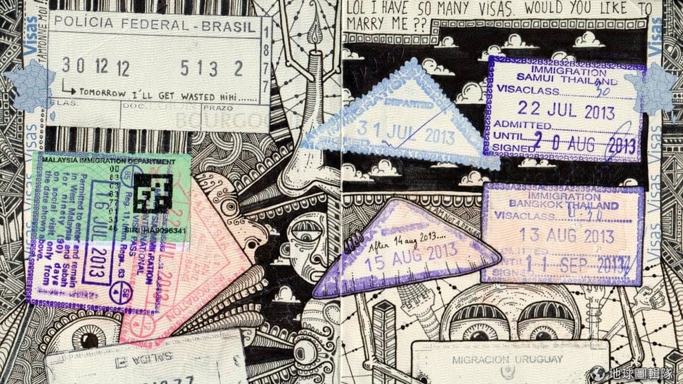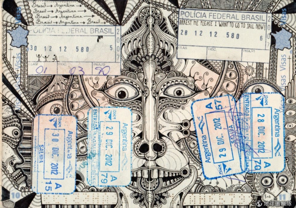 在這裡也要給你個小提醒,在護照上塗鴉有可能會讓護照失效。但是,孔比耶說沒有任何一個使用他塗鴉護照的人被禁止入境。