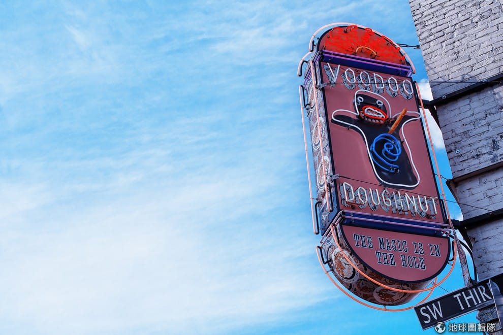 網友波特蘭市中心的那一區,坦白說,治安並不是很好,街頭不時可以見到或坐或躺的街友,走路時必須步步為營,因為人行道上、牆腳邊,總會驚見讓人不敢多想的各種污漬。然而,位於第三街的「巫毒甜甜圈」(Voodoo Doughnut),不管是炎炎夏日,還是冷颼颼的寒冬,店門外都有大排長龍的顧客。