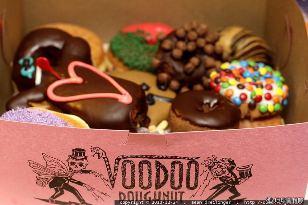 每週營業七天,每天營業24小時的「巫毒甜甜圈」,可以說把這句口號的精神發揚光大,甜甜圈及店內裝潢都走搞怪與另類風格,顏色大膽,圖型誇張,店員行事風格也一個比一個酷,年輕女店員會扯著嗓子朝排隊等著入店的人潮大喊「關門!把門關起來!」要求民眾保持大門關閉。面對不知道只收現金規定的顧客詢問能否刷卡,店員也是酷酷地回答可以去旁邊的提款機領現金。