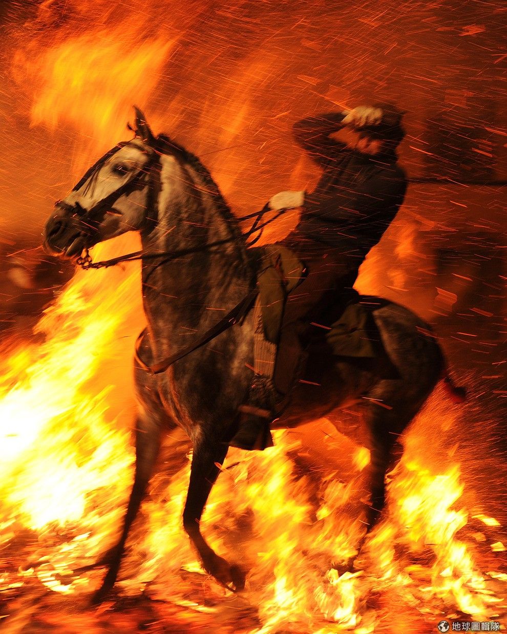 gettyimagesJasper Juinen勇敢地騎馬越過熊熊烈焰!仔細看看,他們的臉上都有用布巾嚴密的包裹住,做好萬全的防火準備。