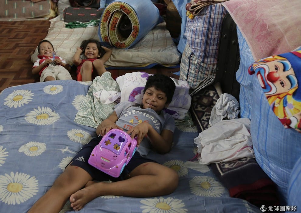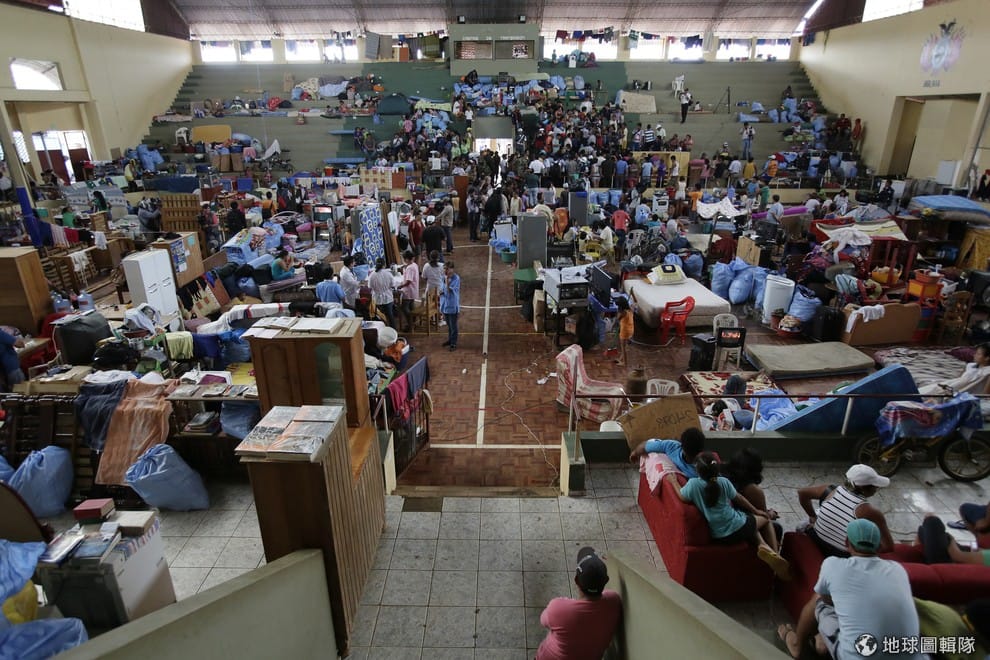地球圖輯隊逃難的民眾暫時住在當地的運動中心裡。