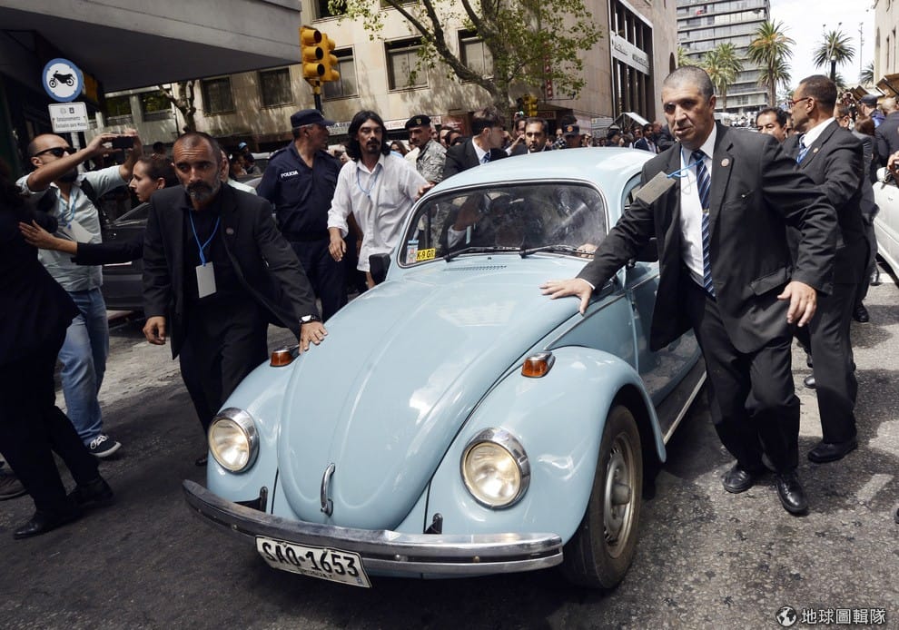 穆西卡出入都靠著他那輛1987年的藍色小金龜車,在總統交接典禮結束後他駕著金龜車離開會場。