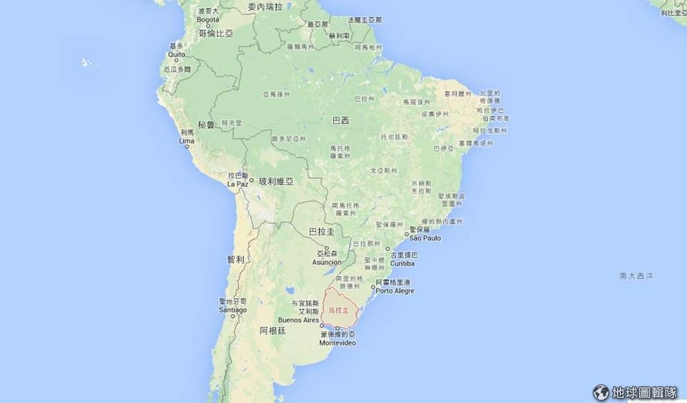 烏拉圭(紅色區塊)和巴西與阿根廷接壤,在穆西卡的領導下被譽為南美洲最民主的國家。