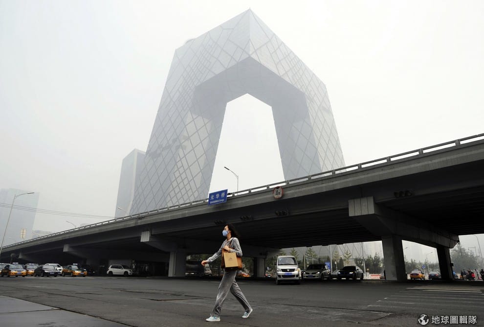 空氣汙染讓整個北京一片霧濛濛,民眾上街都得戴著口罩過濾空氣。