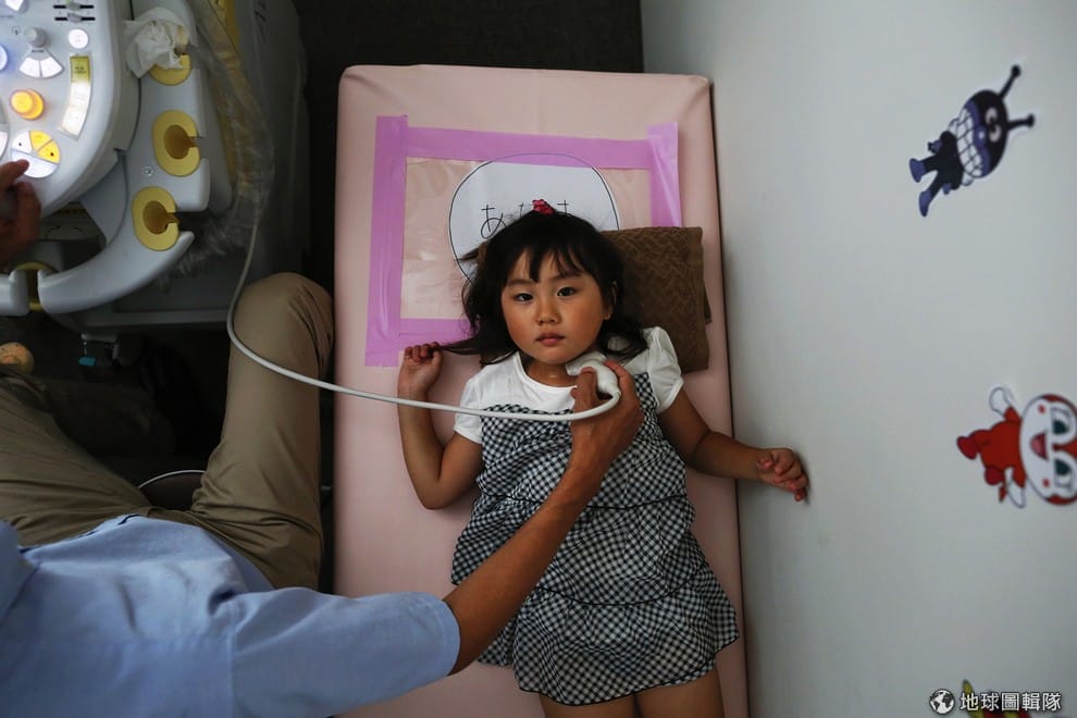 小女孩正在接受甲狀腺檢查。