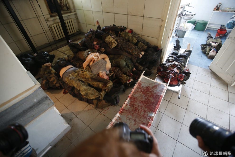 繼續閱讀2014年5月底,烏克蘭政府軍和親俄派陣營發生嚴重衝突,照片中是衝突中喪生的反政府士兵,他們的屍體被堆在地上,地面滿是鮮血。
