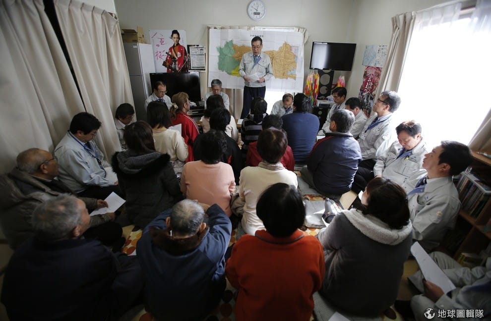 路透社從大熊町撤離的災民們聚集到會津若松市內參加環境署的說明會。