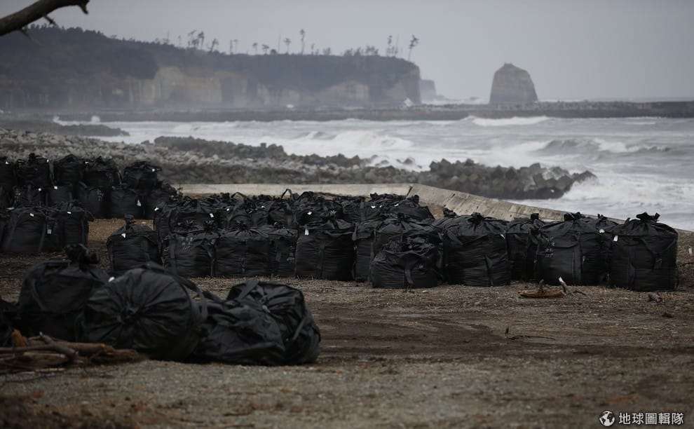 路透社目前福島的富岡町當地可見到隨意放置的垃圾袋,裡面滿是汙染的土壤等放射性物質。