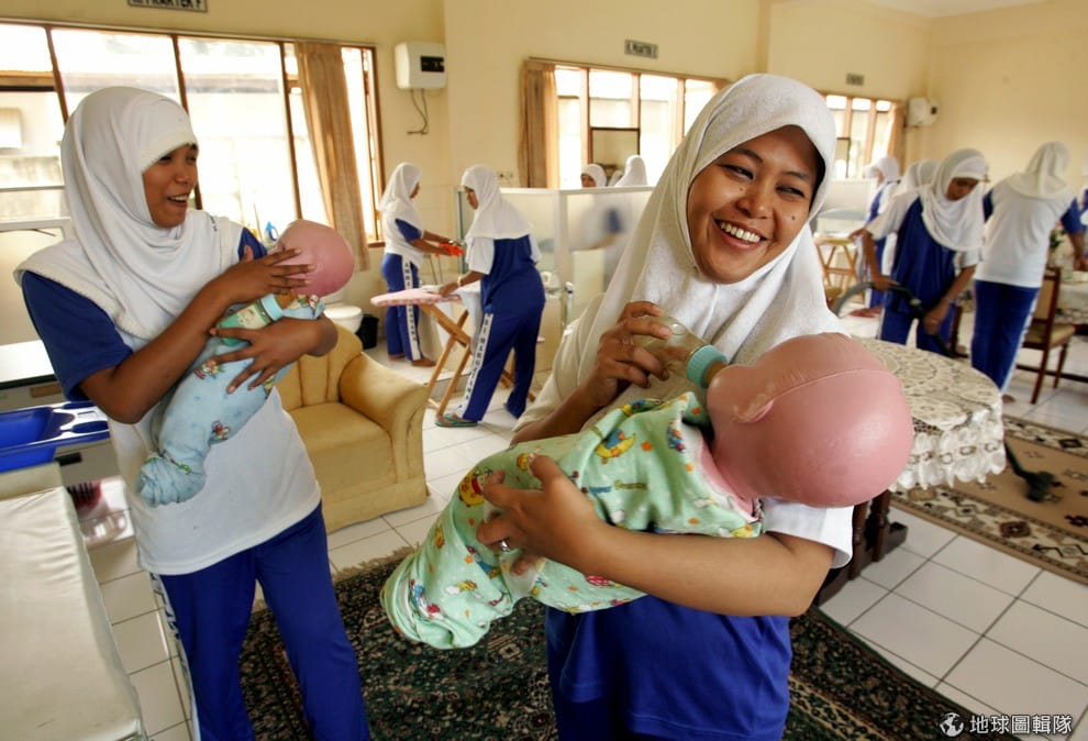 印尼的培訓中心裡,傭人實習生正在接受專業訓練,學習怎麼把家務事做得完美。