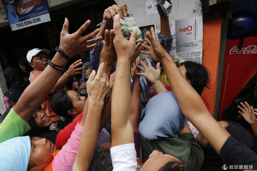 gettyimages雅加達北部受災嚴重,當地的居民們正在排隊等著食物救濟。Ulet Ifansasti/Getty Images