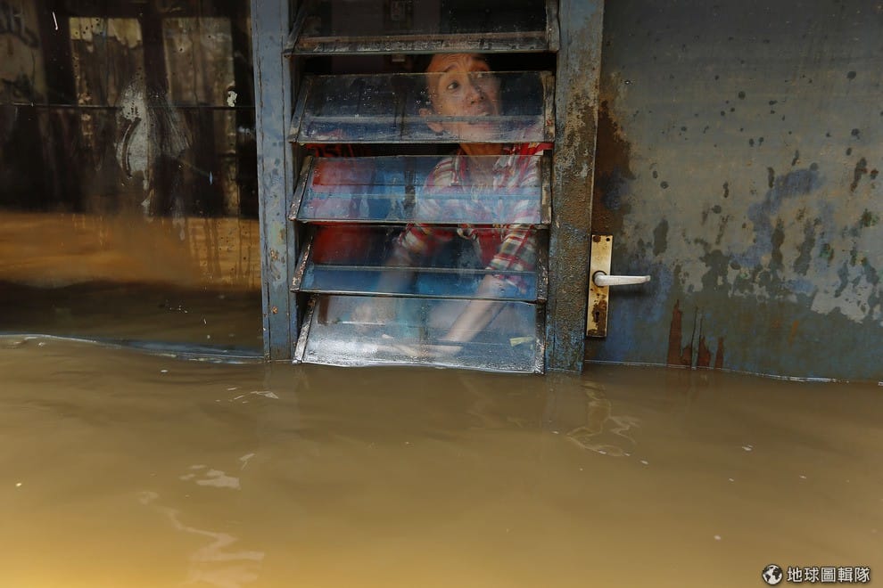 gettyimages水淹家門前,印尼當地一名女性也只能一直往窗外看災情到底會怎麼發展。Ed Wray/Getty Images