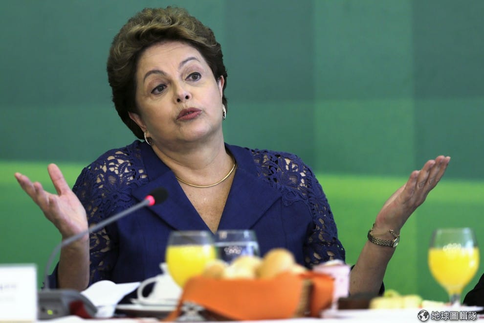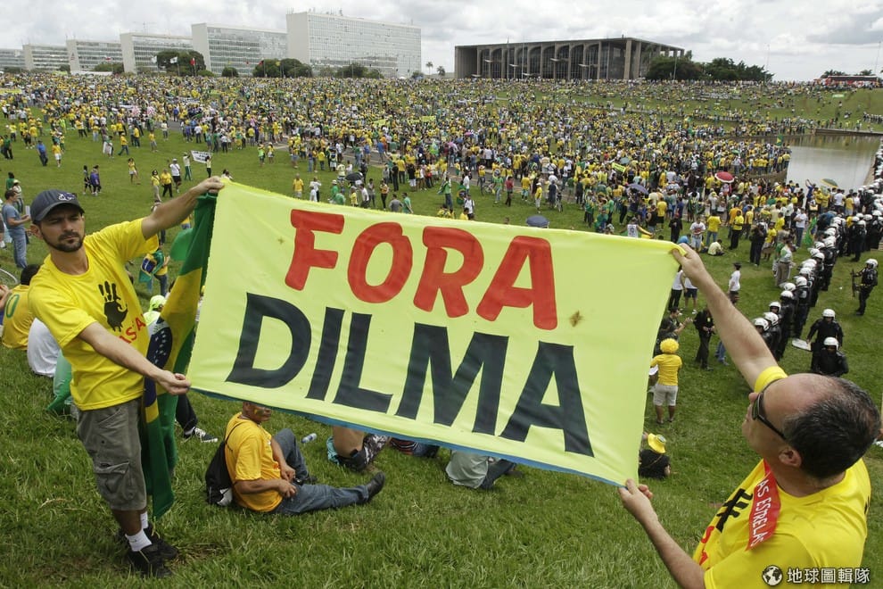 圖為巴西現任總統杜塞夫,她領導的政府表現不佳,同黨黨員更涉入巴西石油公司行賄醜聞中,導致人民上街要求彈劾她。