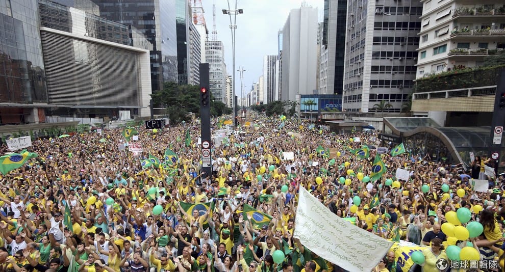周日(15)的全國抗議是繼 2013以來巴西最大型的抗議,但是參與民眾的階層與政治分布卻大不相同,在遊行時也比較和平。