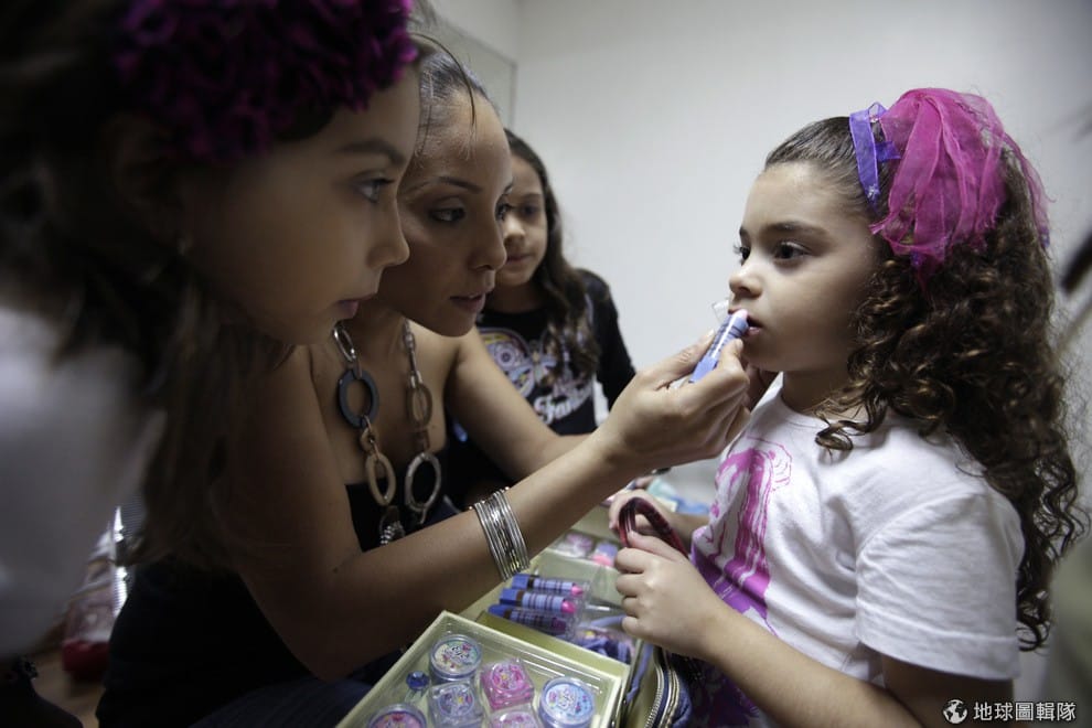 學校裡的學生從 4歲到 24歲都有,所有上課的人都打扮得完美無瑕,年紀大一點的女孩腳上還會踩著 12公分高的高跟鞋。
