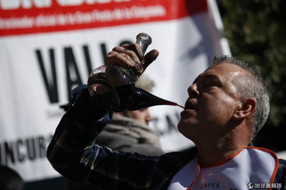 另外,當地人也會把葡萄酒倒進名為porró的傳統玻璃酒器中。porró有兩個瓶口,一個較大,裝完酒後以軟木塞塞住,而另一個瓶口由下往上延伸越來越細,整個瓶身下寬上窄,這樣的設計是為了讓一群人不用杯子,靠著傳遞porró就可以一起喝酒。用porró喝酒的訣竅就在嘴巴不能碰到細瓶口,得由上而下直接將酒液倒入口中,在在考驗飲酒人的技術。