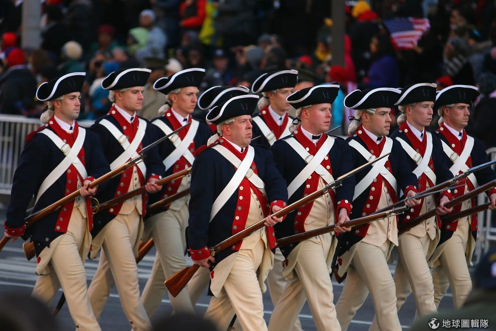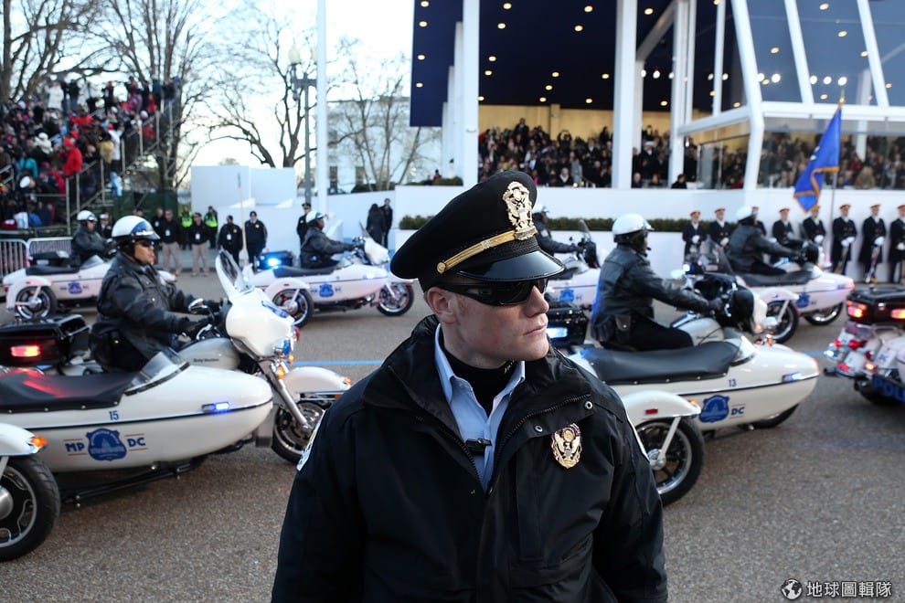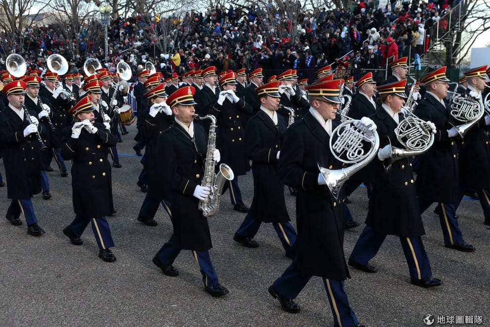 下午的閱兵大典開始。可以看到各式樣的美國軍官走在國會大廈前方廣場。非常壯觀!Joe Raedle/Getty Images