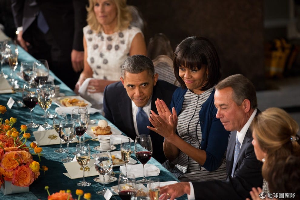 歐巴馬賢伉儷跟共和黨的主席夫妻一同入席。Allison Shelley/Getty Images