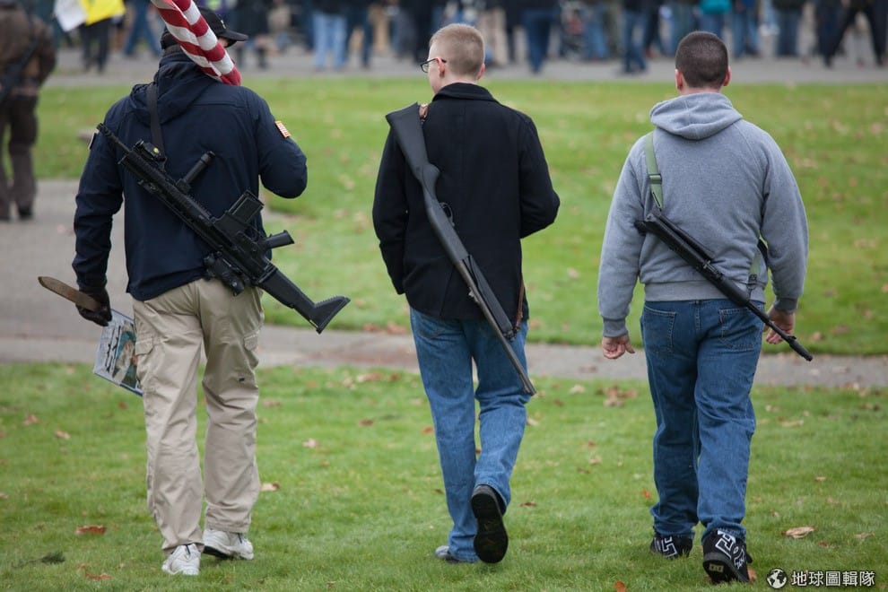 另方面,支持要有槍枝保護的團體也出動表態。David Ryder/Getty Images