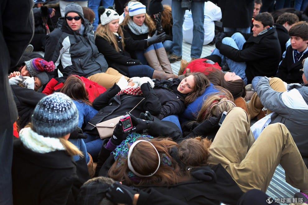 民眾都已經在場外排隊多時了!這時候的美國其實還是很寒冷的。Justin Sullivan/Getty Images