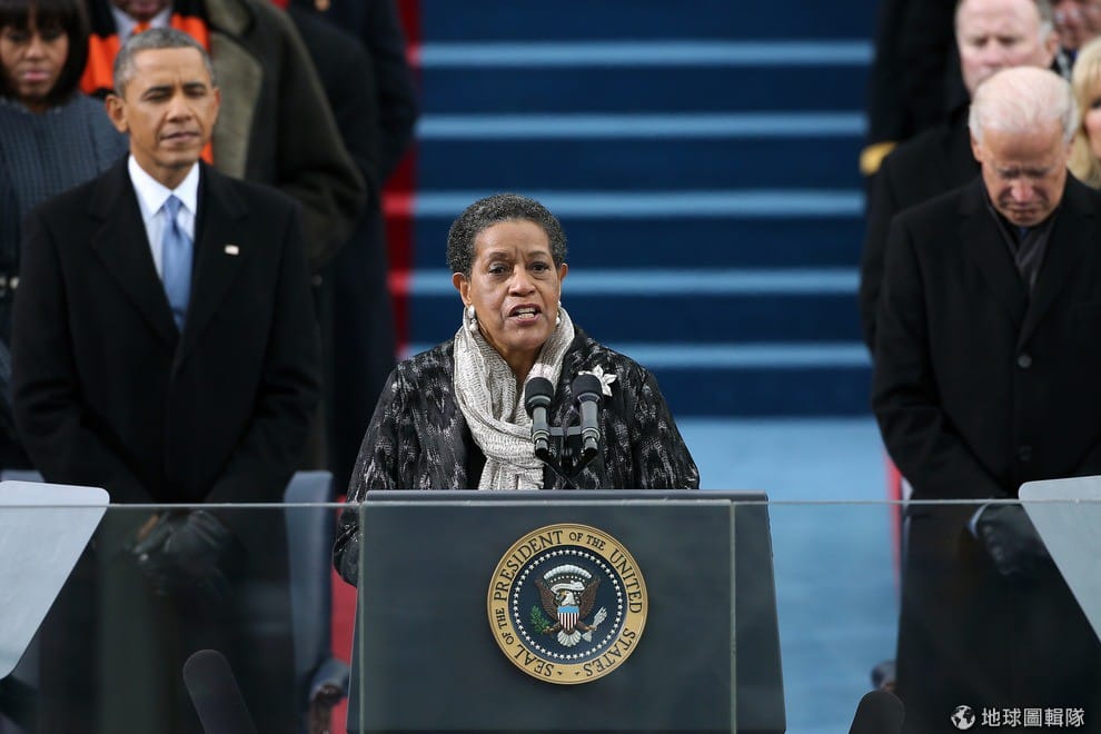 今年帶領大家禱告的女士是茉莉‧艾佛斯,她並非神職人員加上非洲裔的背景,她的出現具有重要意義。Justin Sullivan/Getty Images