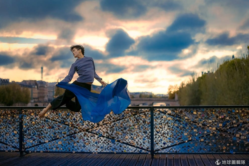 網友巴黎鎖住愛情的情人橋上,周楷用舞蹈表達出愛情的微妙。Photo credit: 周楷