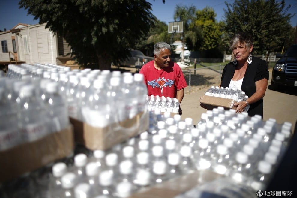 熱心的人們把一罐罐礦泉水搬上車,打算送去給缺水的民眾。