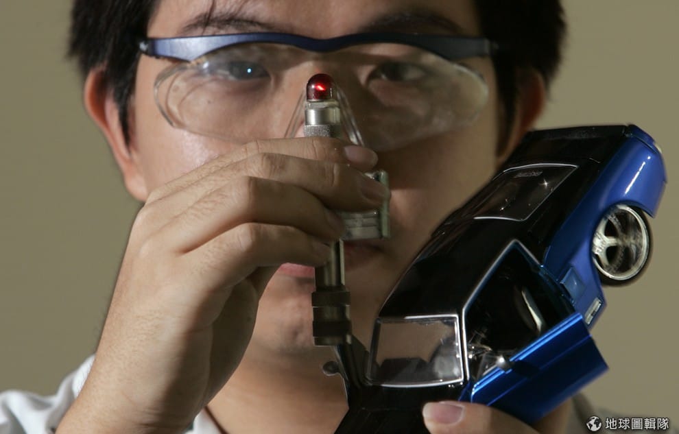 實驗室的工作人員正在檢查玩具會不會太尖銳。