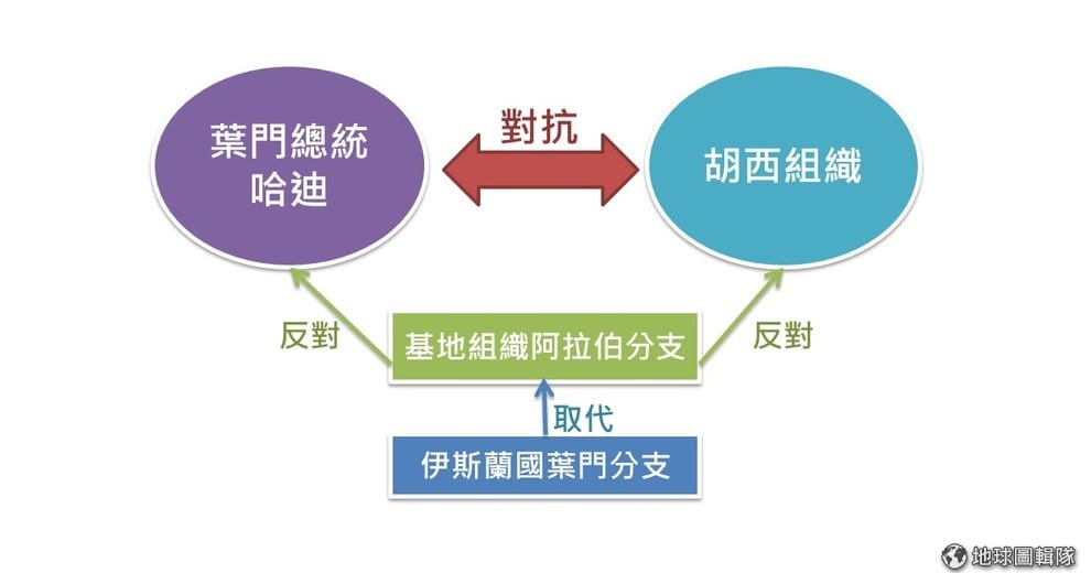 阿拉伯半島的基地組織(AQAP):被美國認為是基地組織最危險的分支,反對胡西組織也反對葉門政府。