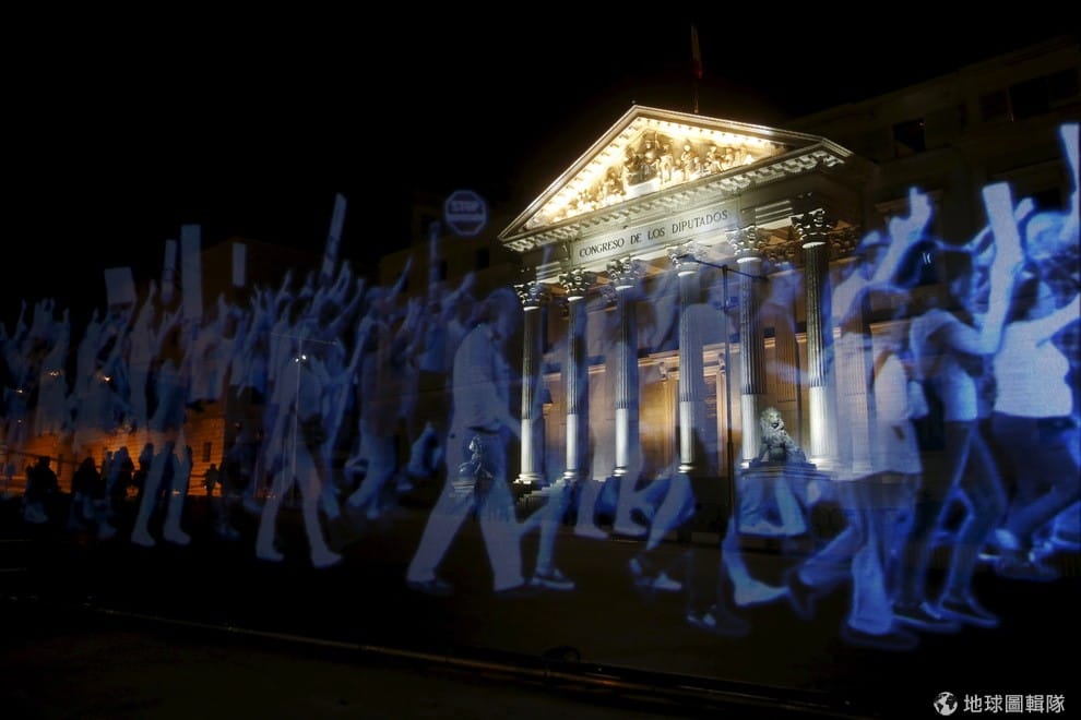上周五(10)晚間,數以千計的民眾聚集在西班牙馬德里的國會前,抗議新法威脅公民自由,但實際上沒有任何一個「真人」到場。