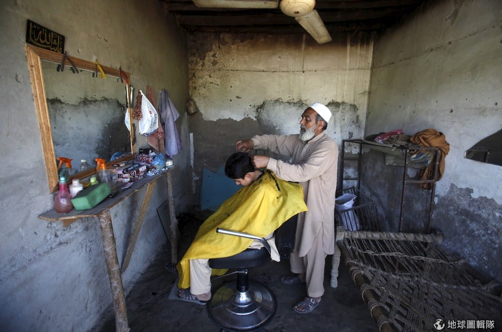 理髮師正在替男孩剪髮。巴基斯坦過去因為資源缺乏加上武裝分子肆虐陷入混亂不安的狀況,這次的投資案對他們來說是改變的契機。